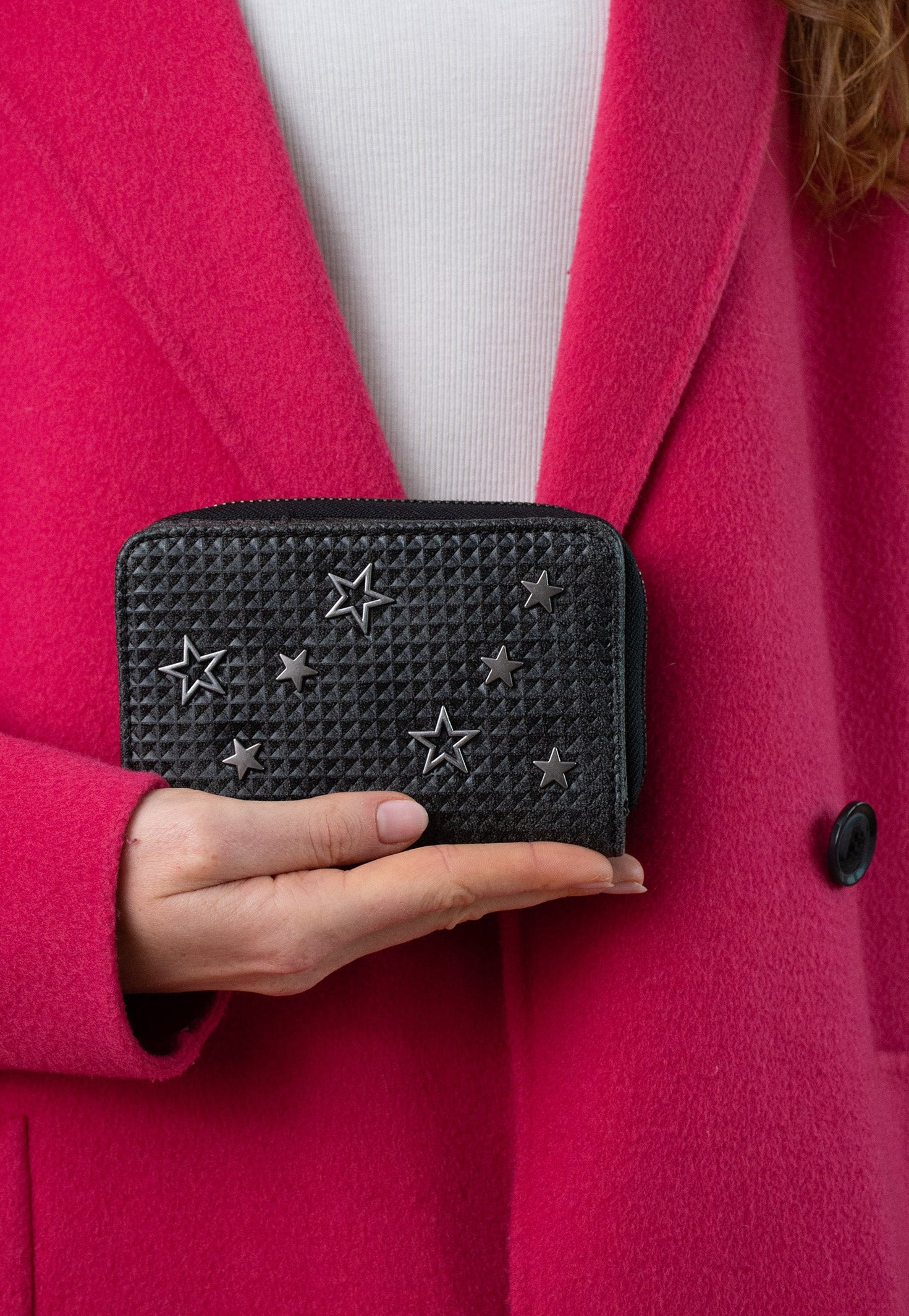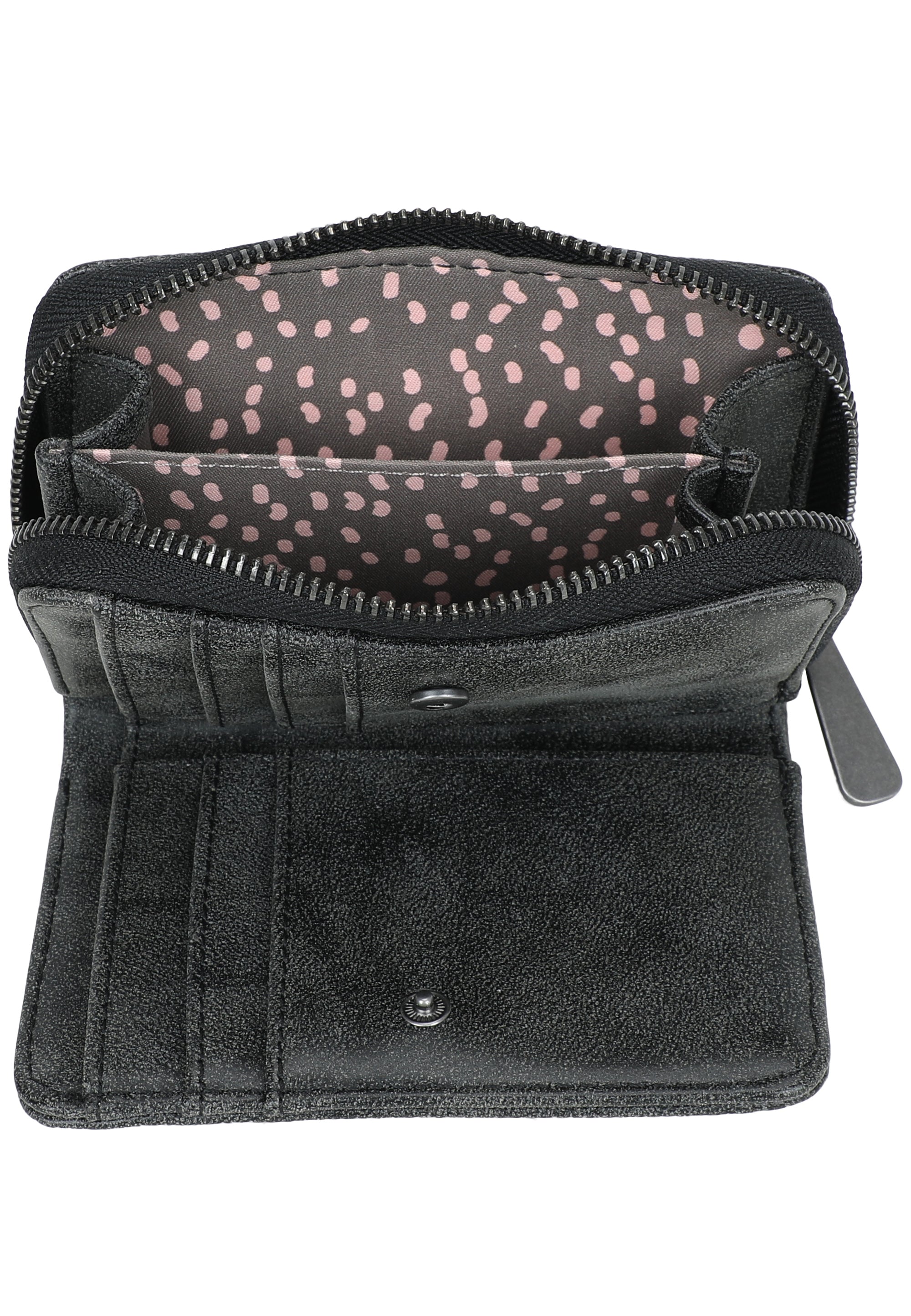 In wunderschönem, mattem Material und roughen Sternchen-Nietenapplikationen auf der Vorderseite ist dieses Wallet ein tolles Highlight in deinem Alltag. Ob in moderner, kleiner Crosstasche oder im Lieblings-Shopper, mit der fritzi Jamie hast du einen tollen, funktionalen Allrounder an deiner Seite. Diverse Karten- und Steckfächer so wie ein Münzfach bieten viel Platz für alle deine wichtigen Begleiter.