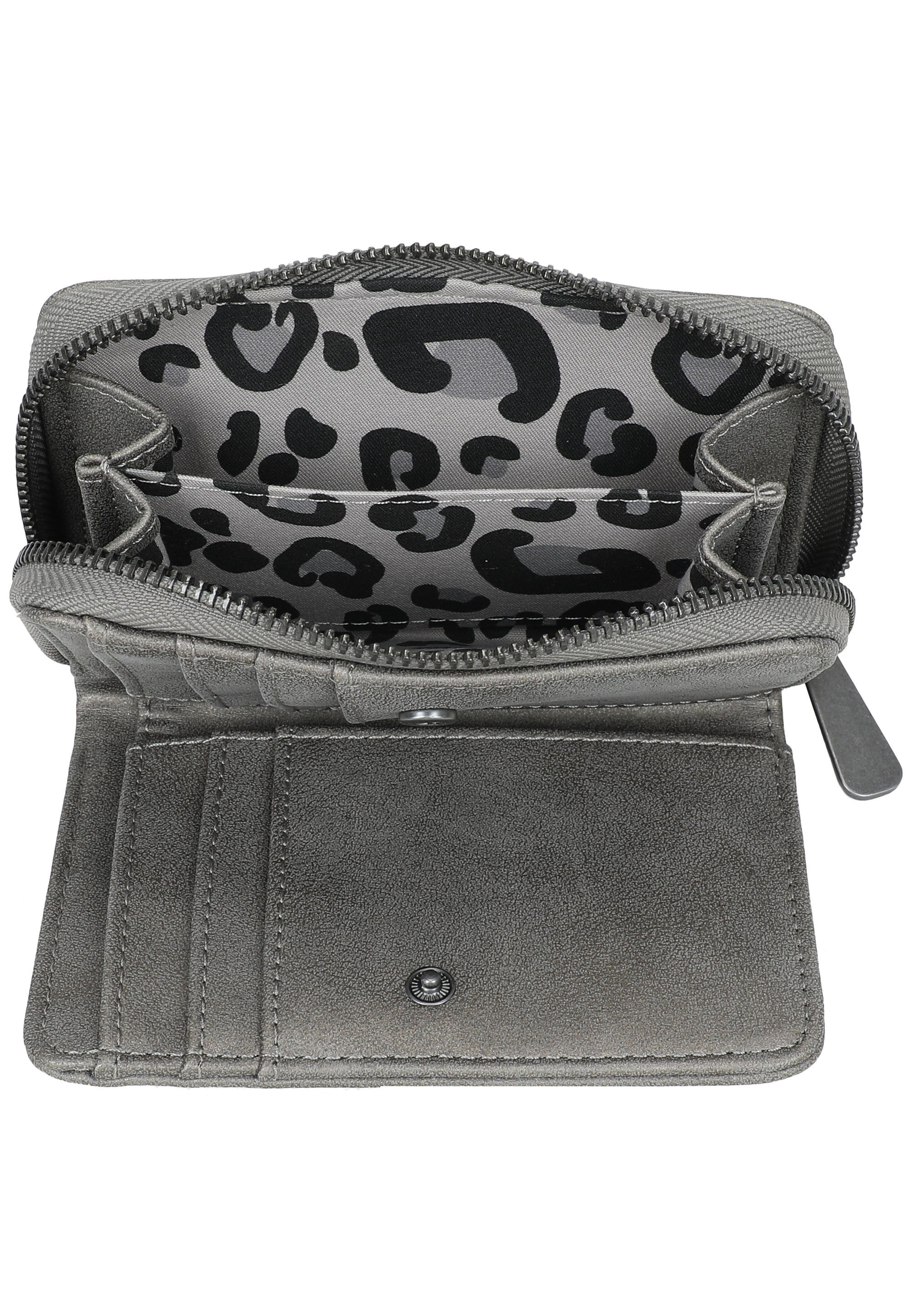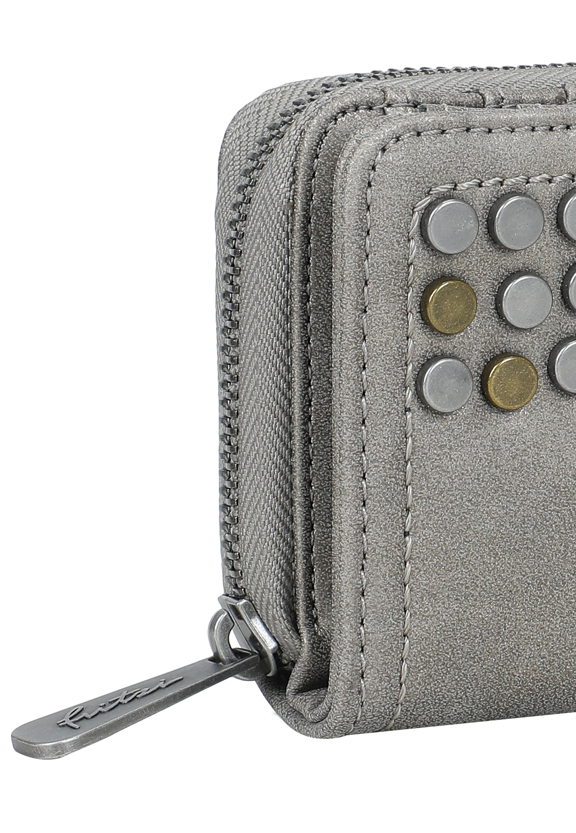 In wunderschönem, mattem Material und roughen, beschlagenen Nietenapplikationen auf der Vorderseite ist dieses Wallet ein tolles Highlight in deinem Alltag. Ob in moderner, kleiner Crosstasche oder im Lieblings-Shopper, mit der fritzi Jamie hast du einen tollen, funktionalen Allrounder an deiner Seite. Diverse Karten- und Steckfächer so wie ein Münzfach bieten viel Platz für alle deine wichtigen Begleiter.