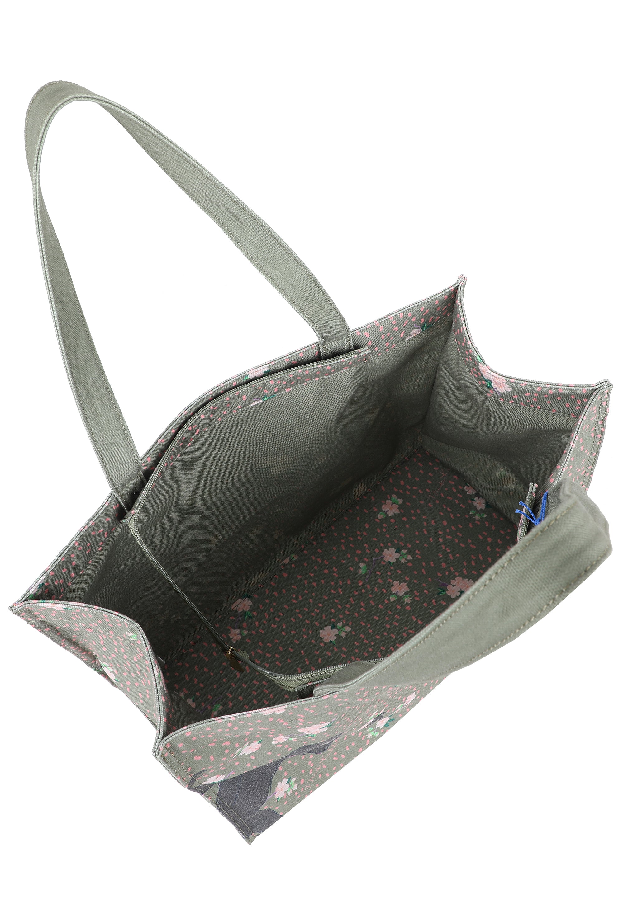 Dieser Style in rougher Canvas-Qualität mit wunderschönem, fein gedrucktem Blümchen-All-Over-Print und platziertem Affen-Print ist mit seinem tollen Füllvolumen ein praktischer wie auch bezaubernder Begleiter in deinem Alltag.