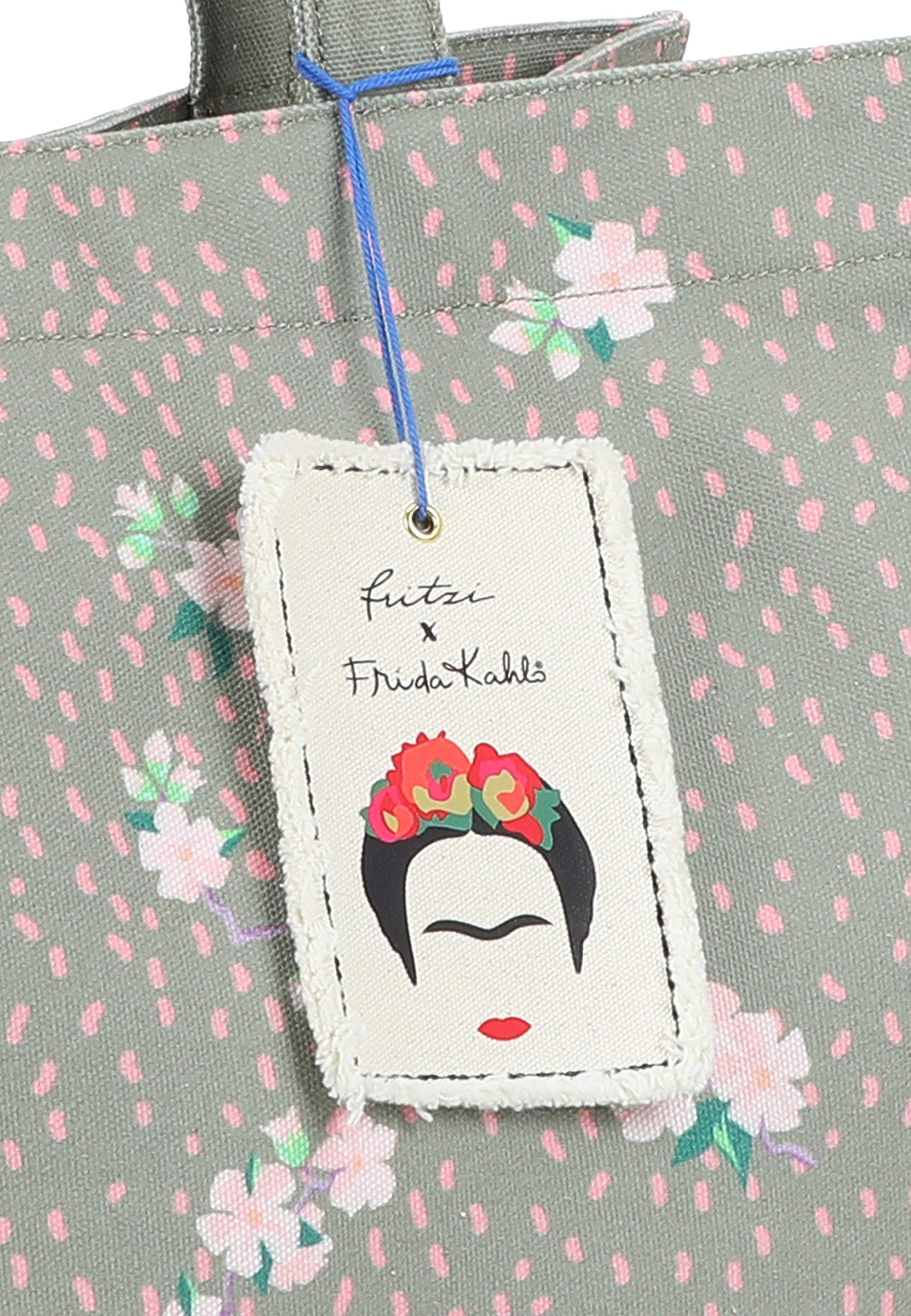 Abgerundet wird der Style mit einem liebevoll, handwerklich gearbeiteten Canvas-Anhänger mit aufgedruckter Frida Kahlo-Illustration – viel zu schade zum Abnehmen.