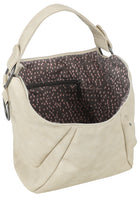 Der Hobo wird akzentuiert durch große, dekorative Hardware-Schnallen an den Seiten – hier lässt sich bei Bedarf auch ganz einfach ein zusätzlicher Schulterriemen mit Karabiner für eine Crossbody-Funktion anbringen.