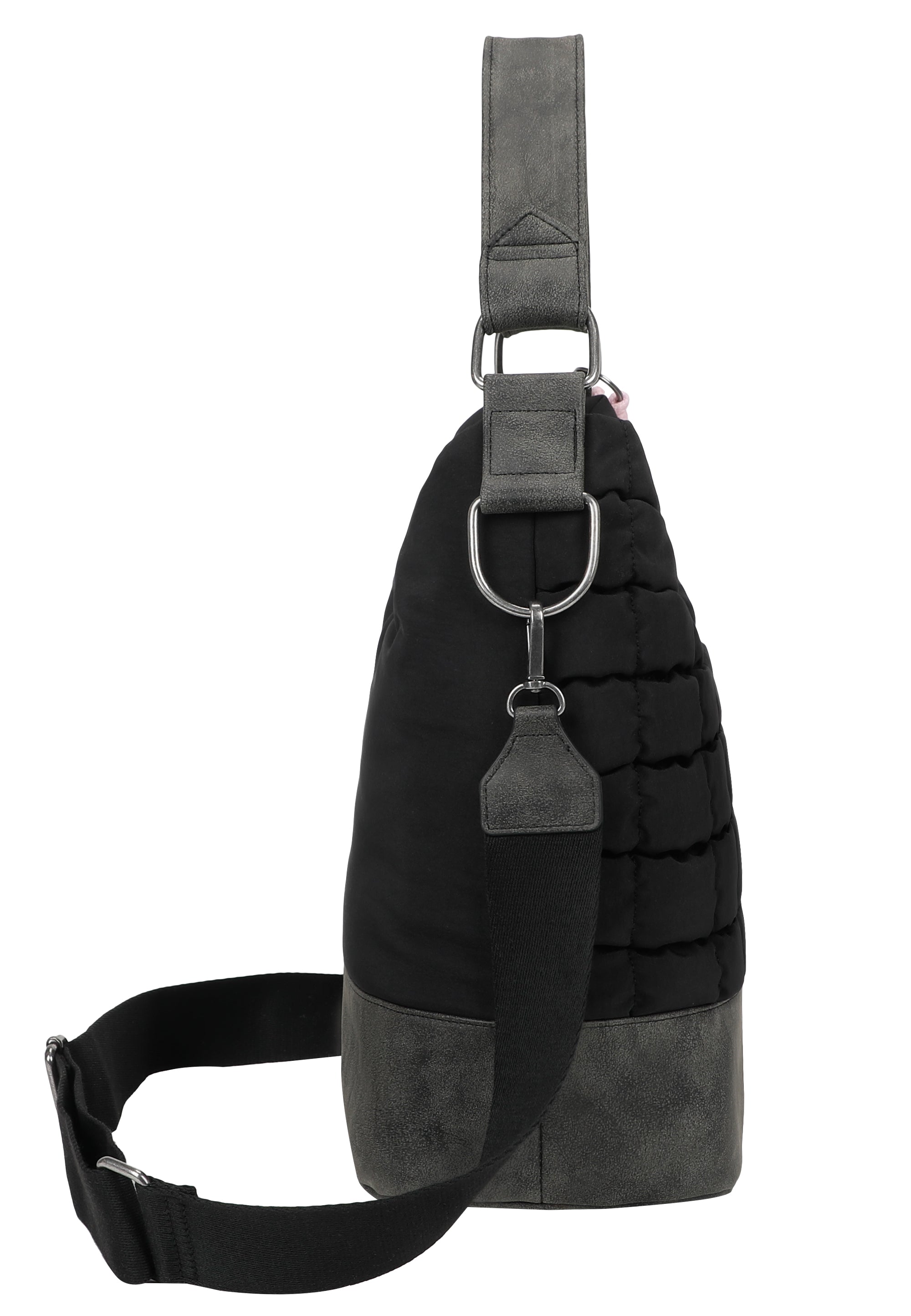 Der Hobo lässt sich entspannt mit einem Magnet-Druckknopf schließen. Im Inneren sorgen extra Fächer für eine gute Organisation. Ein langer, abnehmbarer Kordelanhänger mit gedipptem Ende rundet den Hobo harmonisch ab.