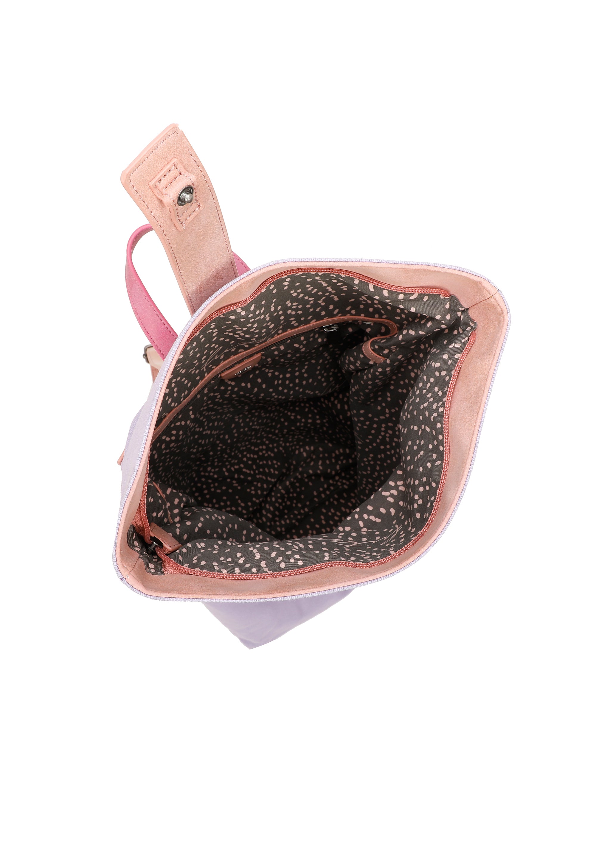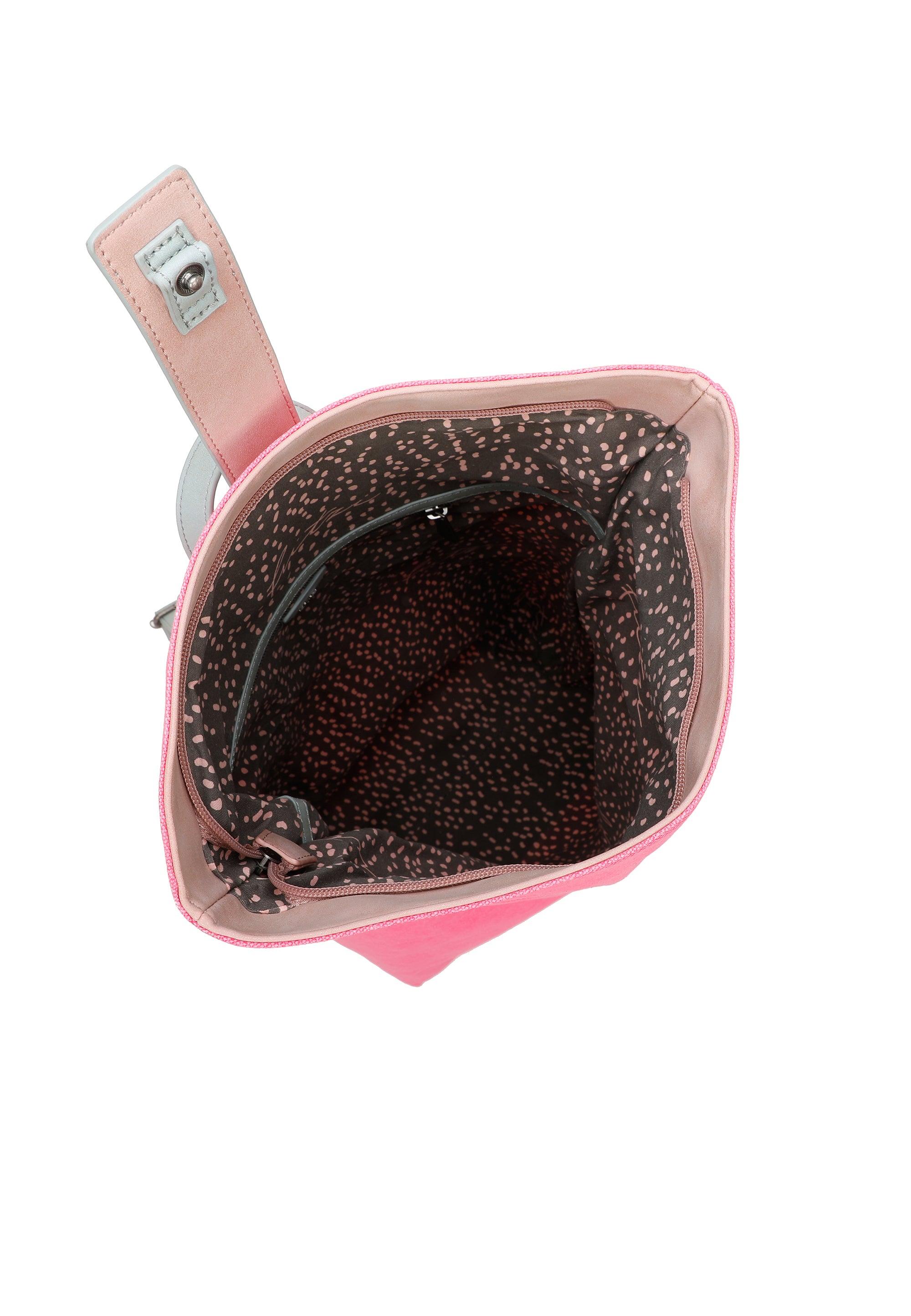 Damit im Alltag alles sicher unter Verschluss bleibt, ist der Style sowohl mit einem Reißverschluss am Hauptfach als auch mit einem festen Druckknopf unterhalb der dekorativen Frontlasche doppelt gesichert. Ein zusätzliches Reißverschlussfach auf der Rückseite ermöglicht einen schnellen Zugriff auf deine wichtigsten Sachen und liegt dabei direkt am Rücken – ideal zum Beispiel für deinen Schlüssel.