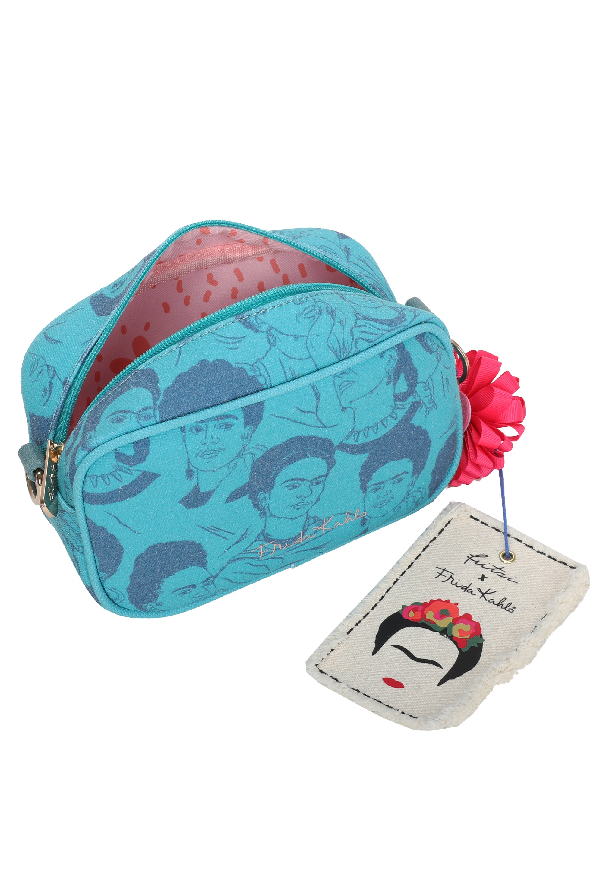 Dieser Style in wunderschöner Canvas Qualität mit Frida Kahlo Kopf-Illustrationen im All-Over-Print ist mit seinem tollen Kleinformat ein treuer Begleiter im trubeligen Alltag.
