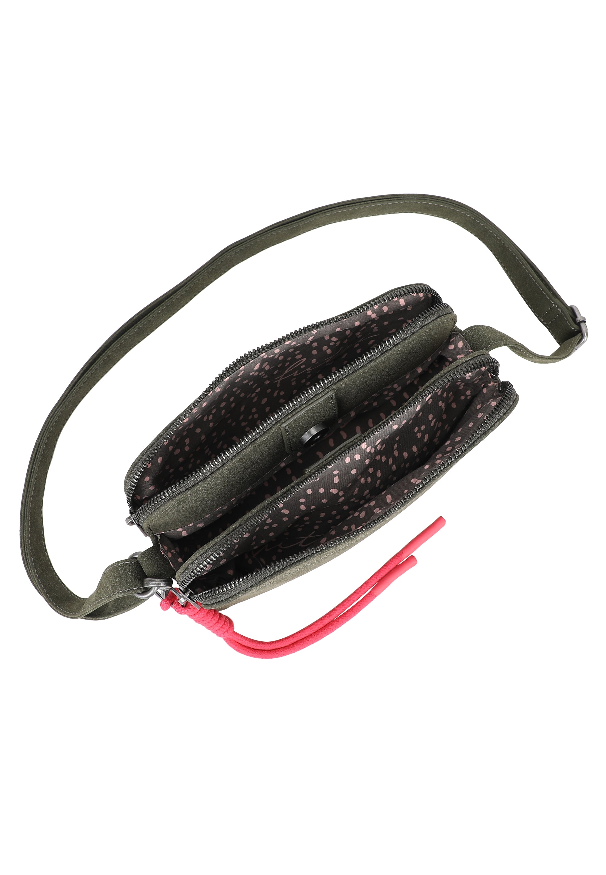 Ausgestattet mit vielen praktischen Fächern ist der Schulterriemen-Style ein perfekter Allrounder in deinem Alltag: zwei Reißverschlussfächer sowie ein Steckfach dazwischen sorgen für eine perfekte Organisation auf kleinstem Raum.