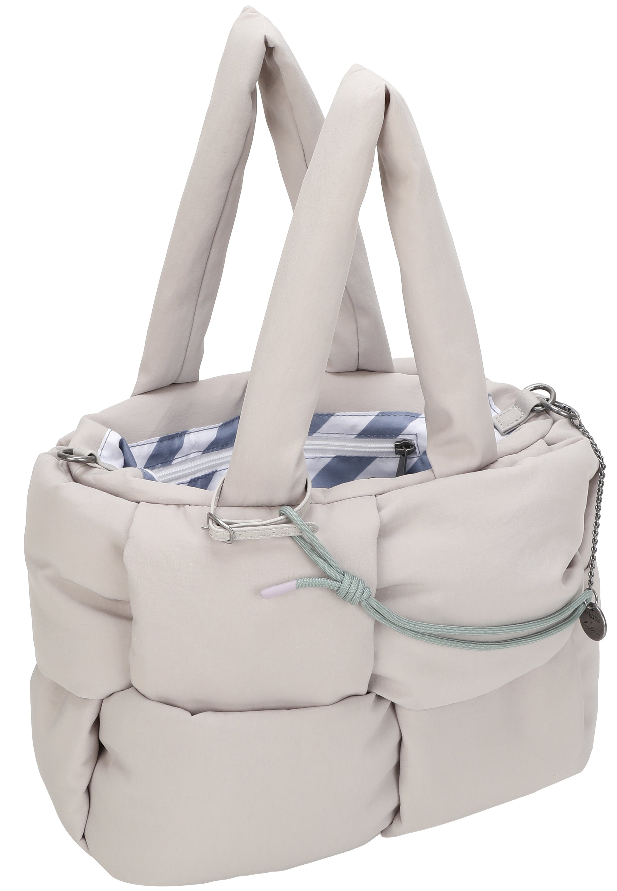 Zum Style gehört auch eine moderne Anhängerkette mit Knotendetail und elegantem Kettenelement, die sich bei Bedarf auch abnehmen lässt. Mit seinem lässigen Look wird dieser Shopper schnell zum absoluten Everyday-Lieblingsbegleiter.