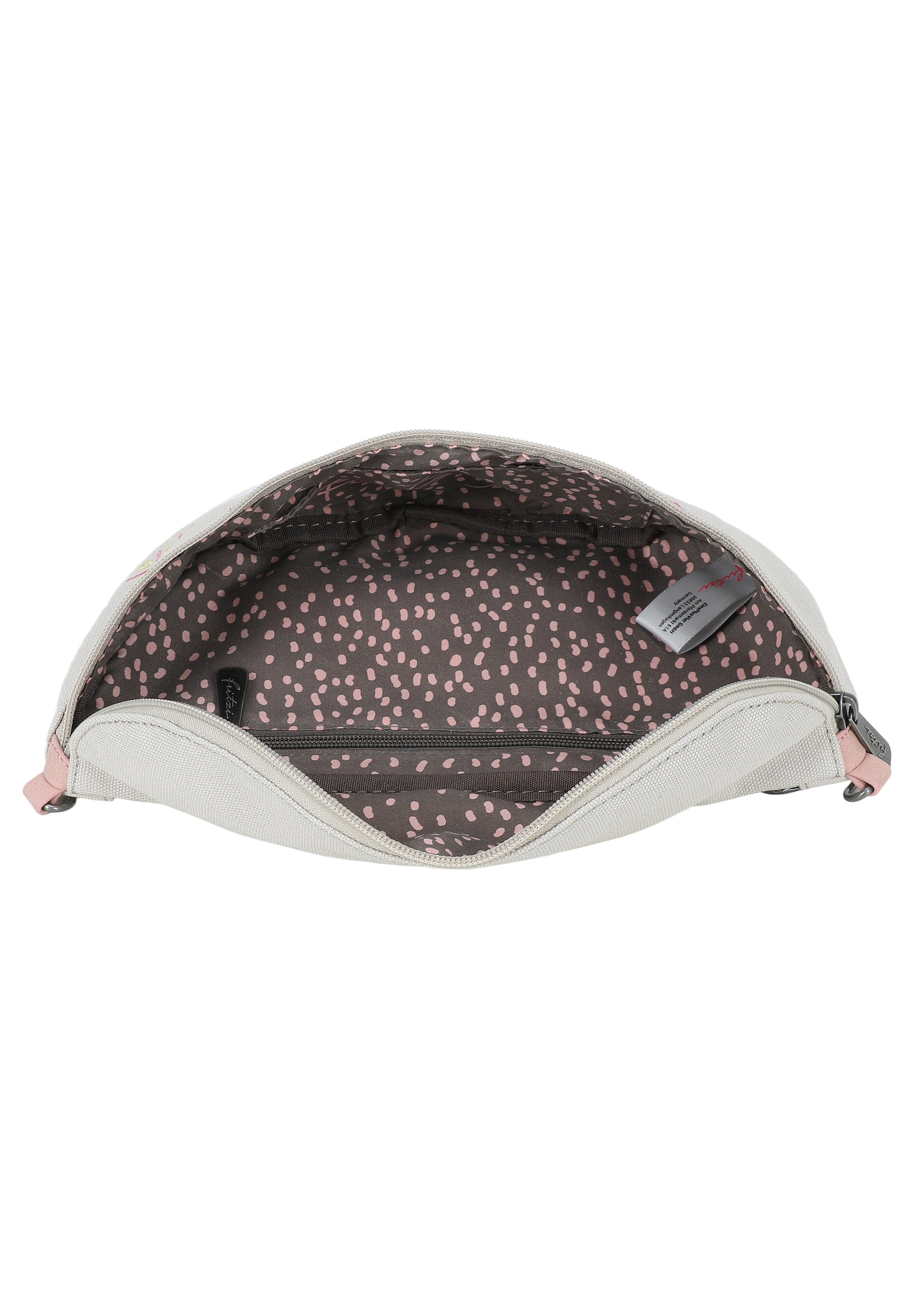 Ausgestattet mit einem Reißverschluss, einem weiteren Reißverschlussfach außen, sowie zusätzlichen Fächern im Inneren sind die kleinen Alltags-Begleiter bestens und sicher verstaut.