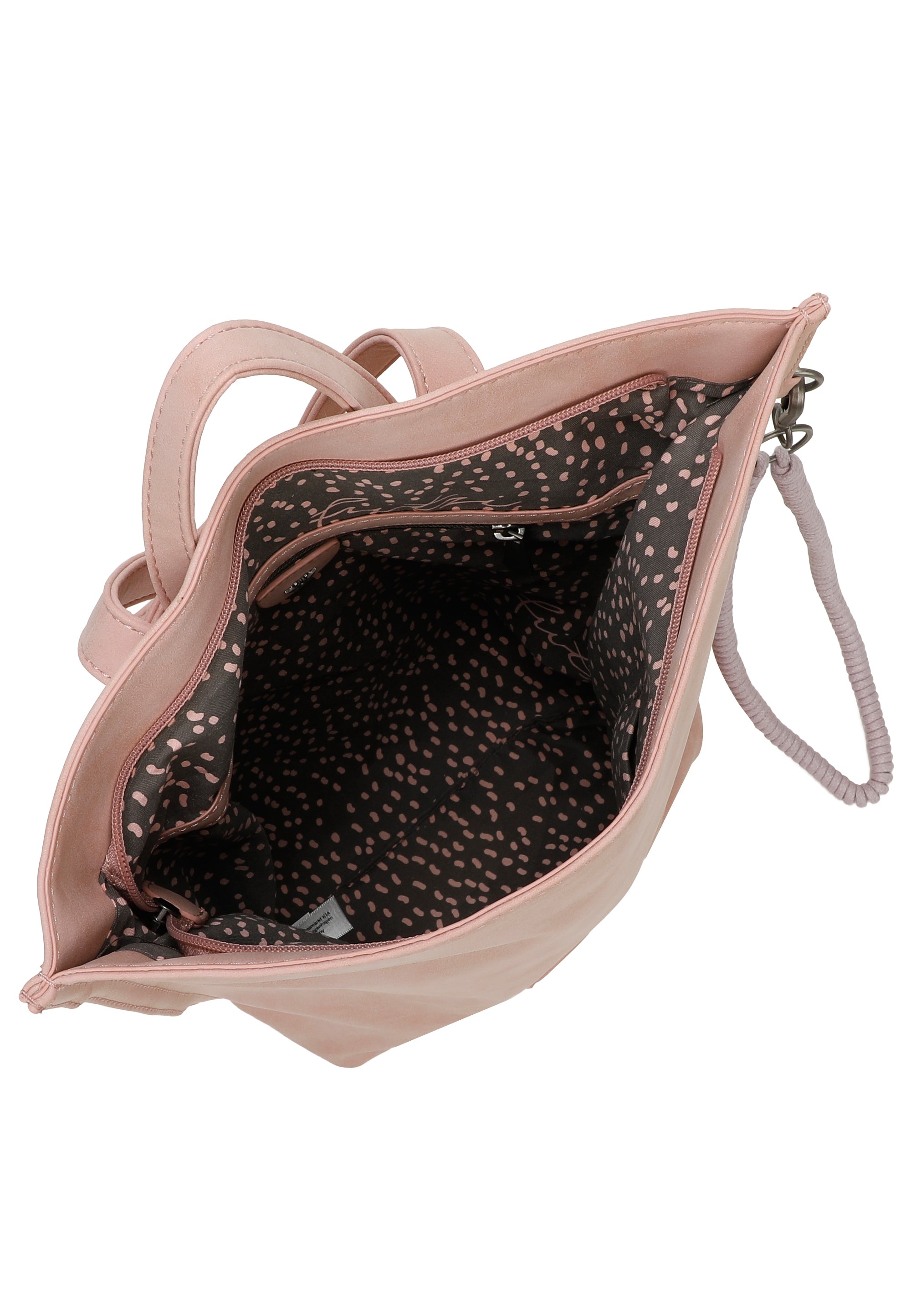 Im versteckten Reißverschlussfach auf der Rückseite sind Kleinigkeiten bestens geschützt verstaut. Ein weiteres, praktisches Reißverschlussfach sowie zusätzliche Steckfächer im Inneren sorgen für eine perfekte Organisation.