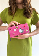 Mit wunderschönen, sommerlichen und aufgenähten Stickern und ausgestattet mit 5 großen Steckfächer, 8 Karten-Steckfächern und einem großen Reißverschluss-Münzfach ist diese Geldbörse einfach ein perfekter Begleiter in deinem Alltag und ein absolutes Must-Have für jeden Hello Kitty Fan.