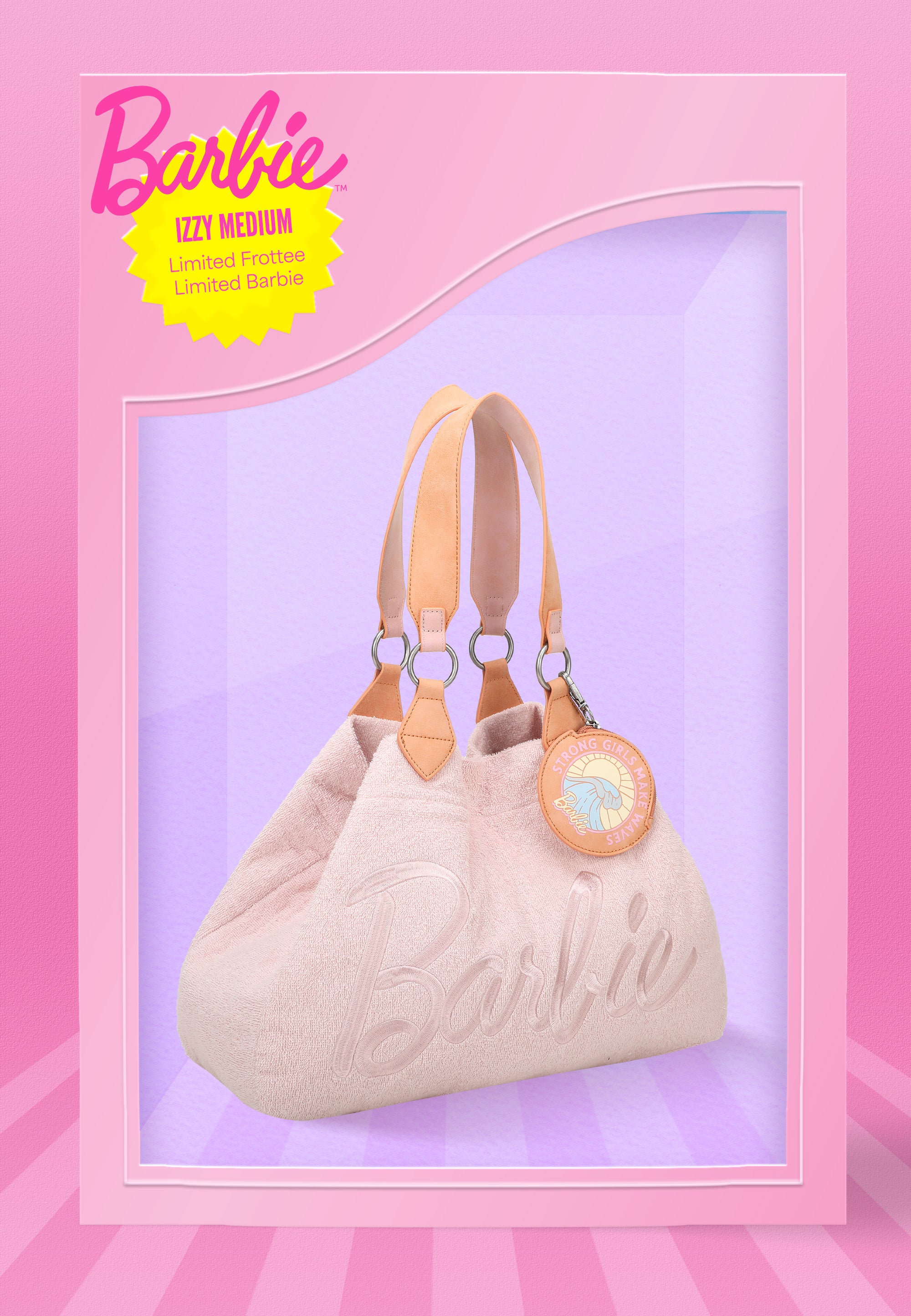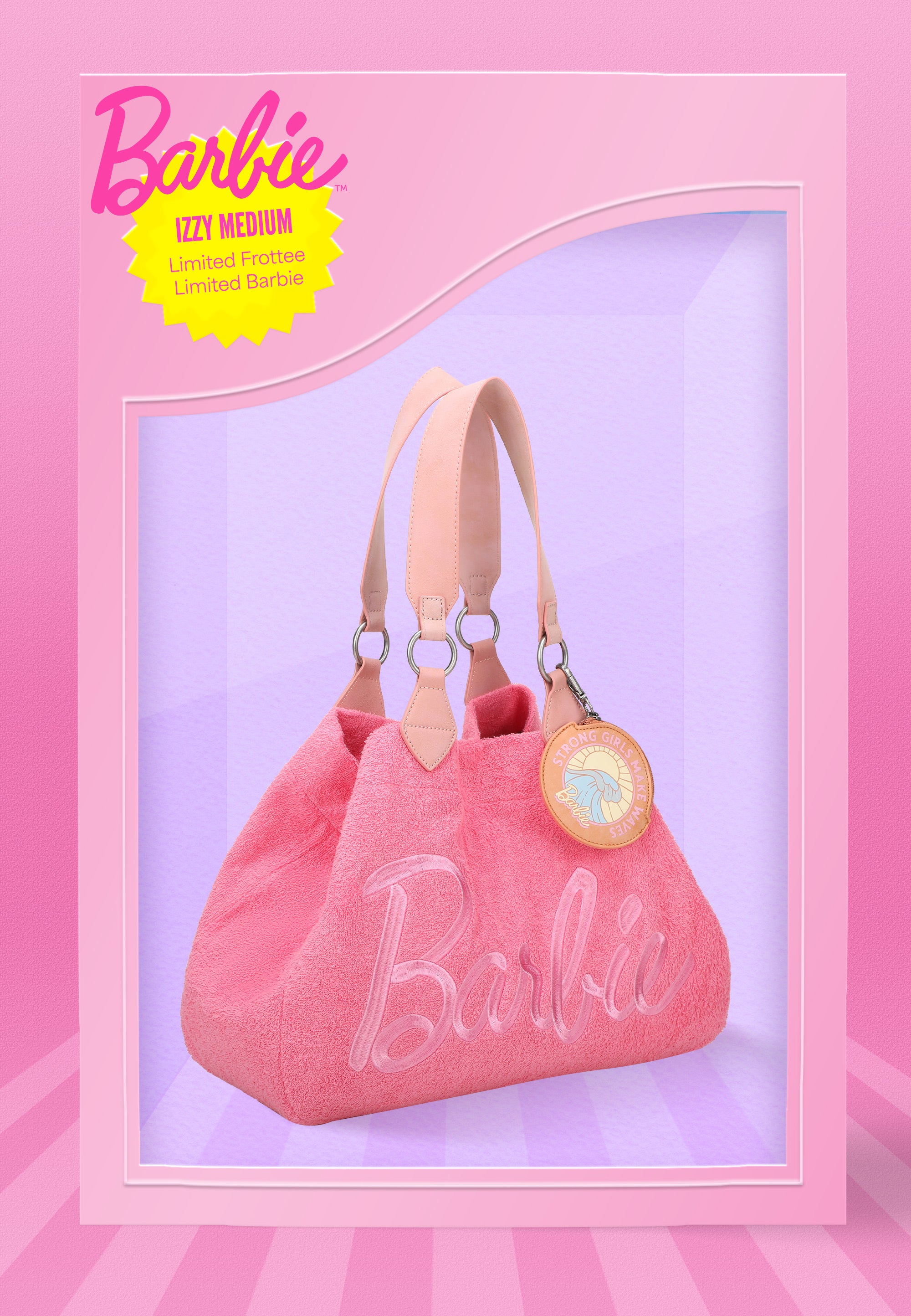 Die Izzy Medium Frottee Limited Barbie™ ist ein großzügiger Shopper-Style in einer wunderschönen, limitierten Version in kuscheligem Frottee, der einfach Lust auf eine fantastische Sommer-Saison macht. In Kooperation mit der Marke Barbie launcht fritzi 2025 erstmals eine begrenzte Kollektions-Kapsel mit ausgesuchten fritzi-Styles in tollen, ikonischen Barbie Looks.