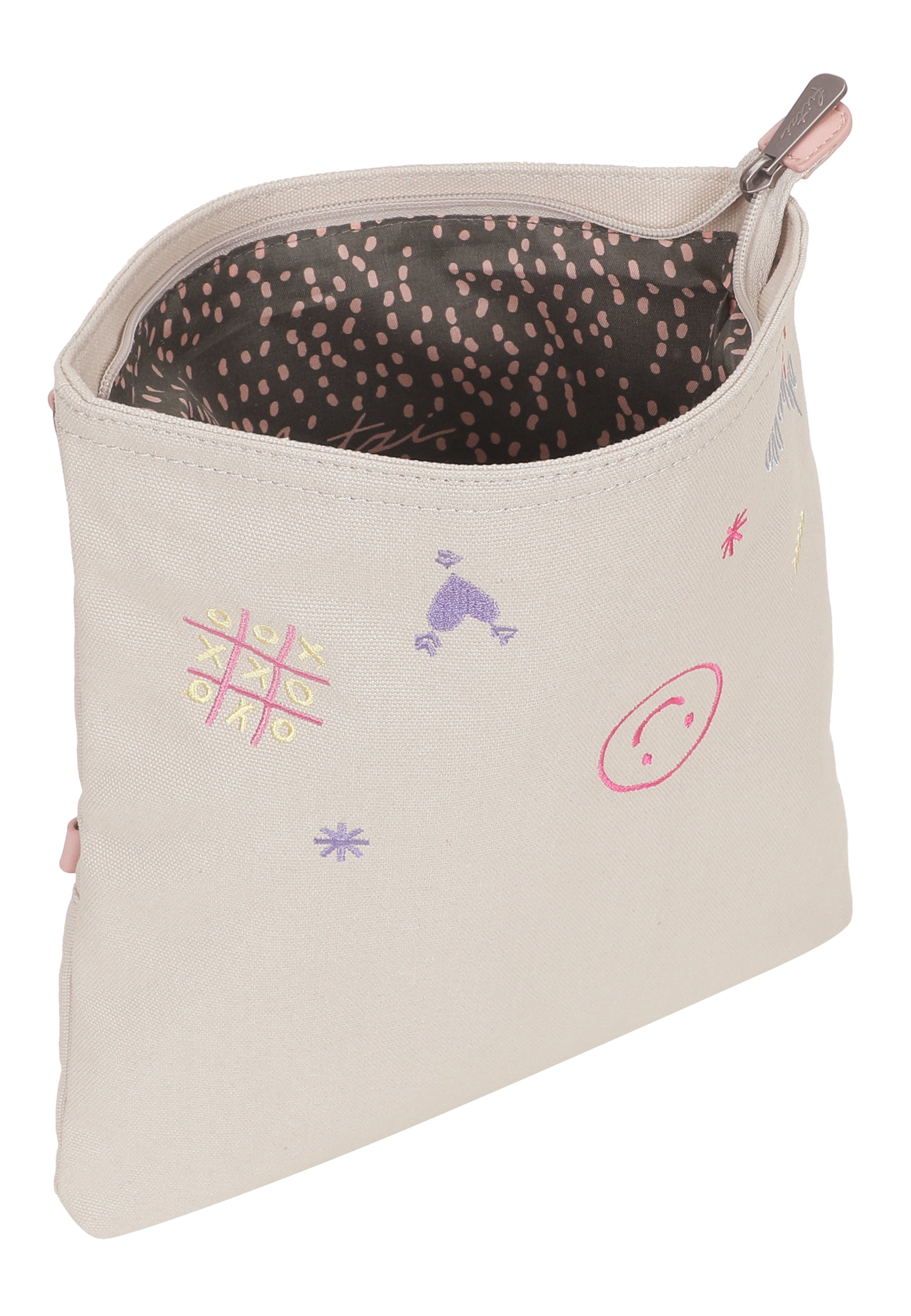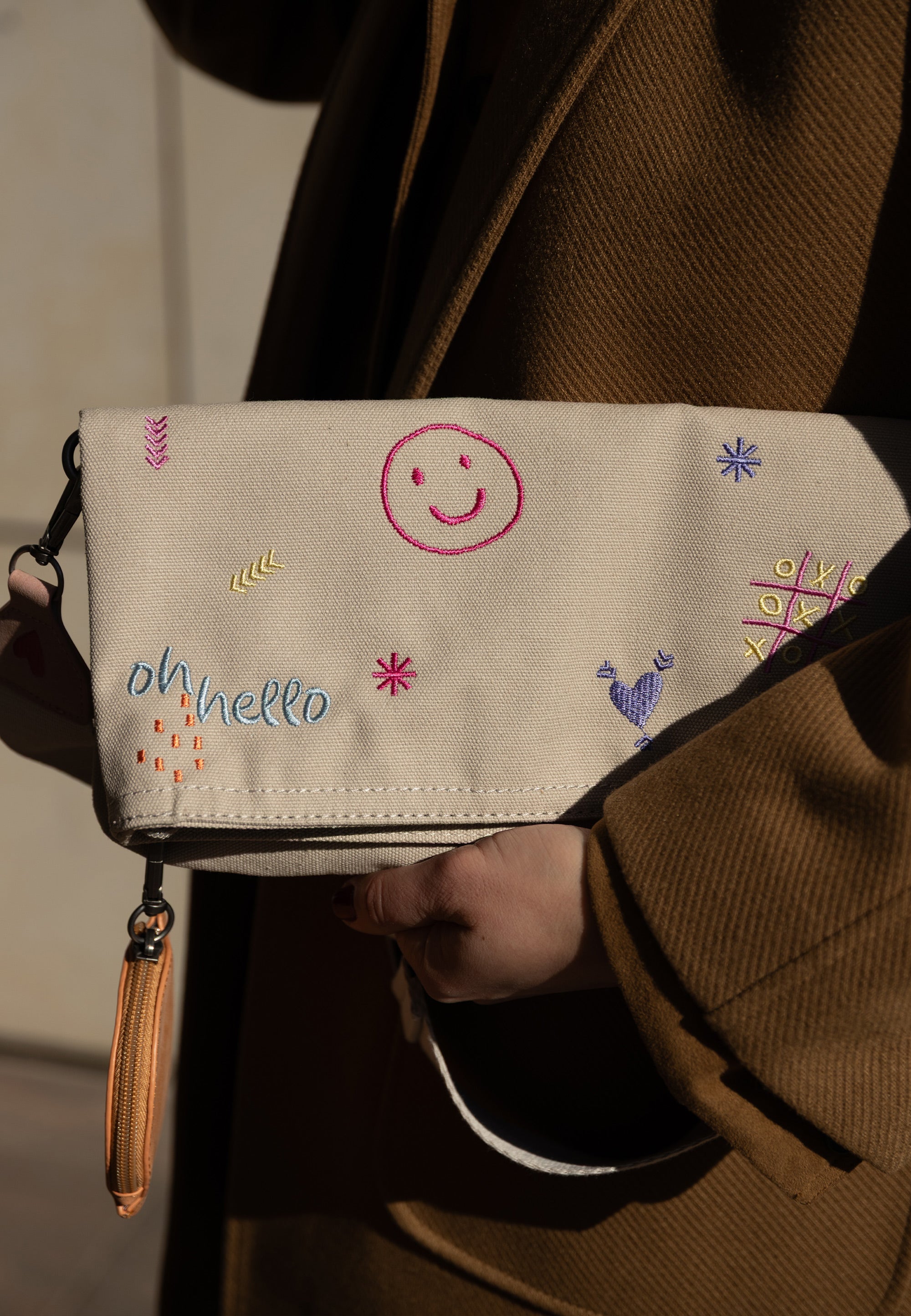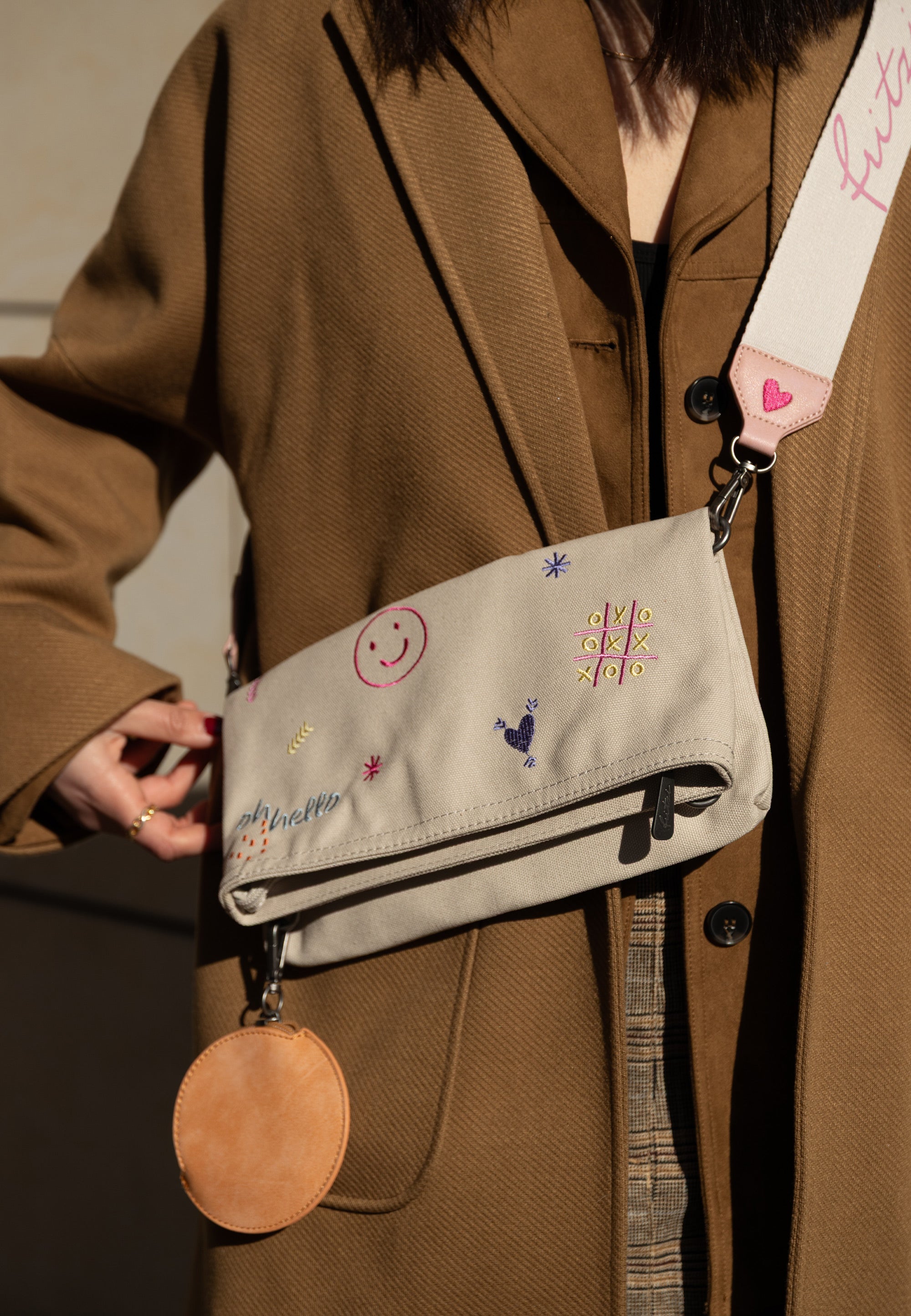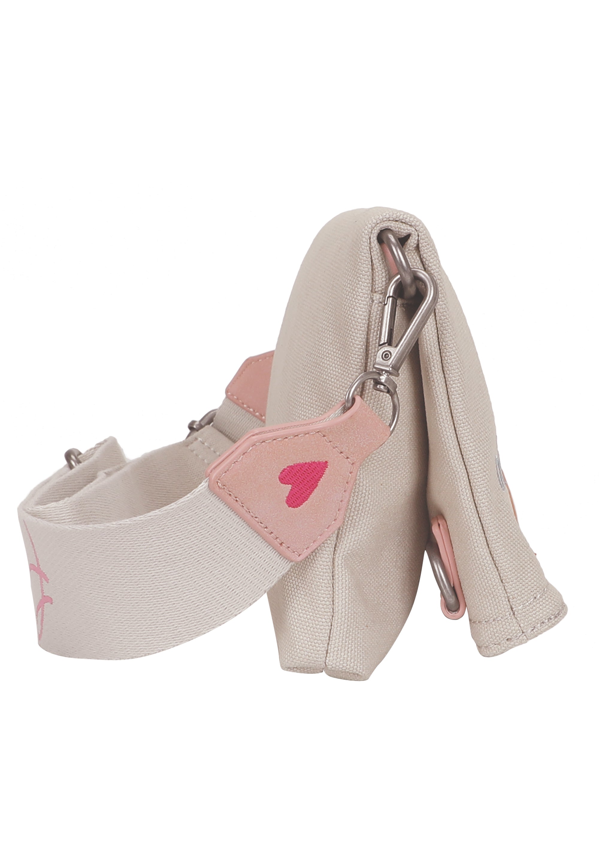 Abgerundet wird der Look mit einem kleinen, abnehmbaren Pocket-Anhänger mit Reißverschluss und süssem ’Happy-Smile-Print‘. Ob umgeklappt oder mit erweitertem Stauraum in aufgeklappter Trageoption: deine lieben Begleiter finden schnell ein sicheres Plätzchen.
