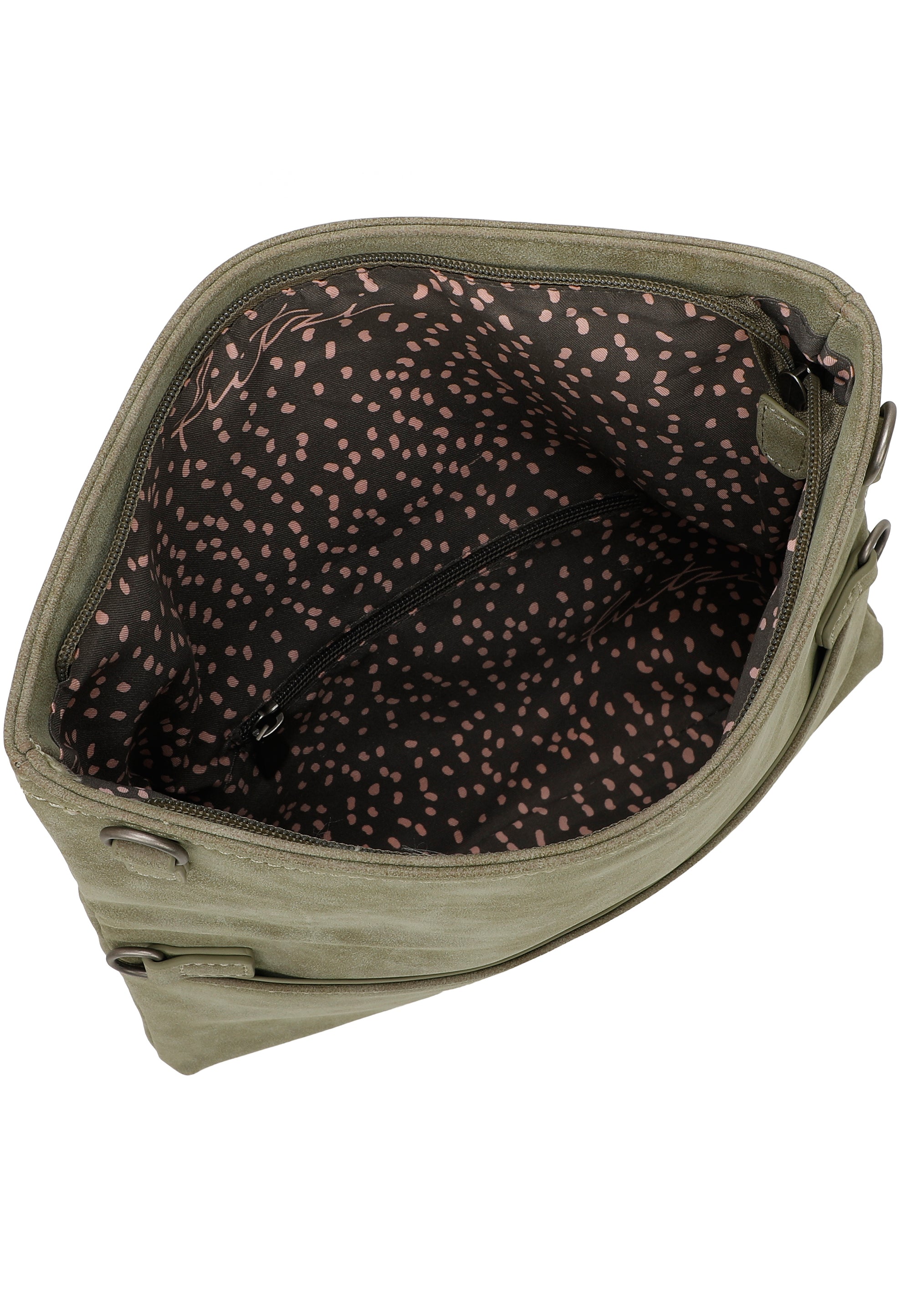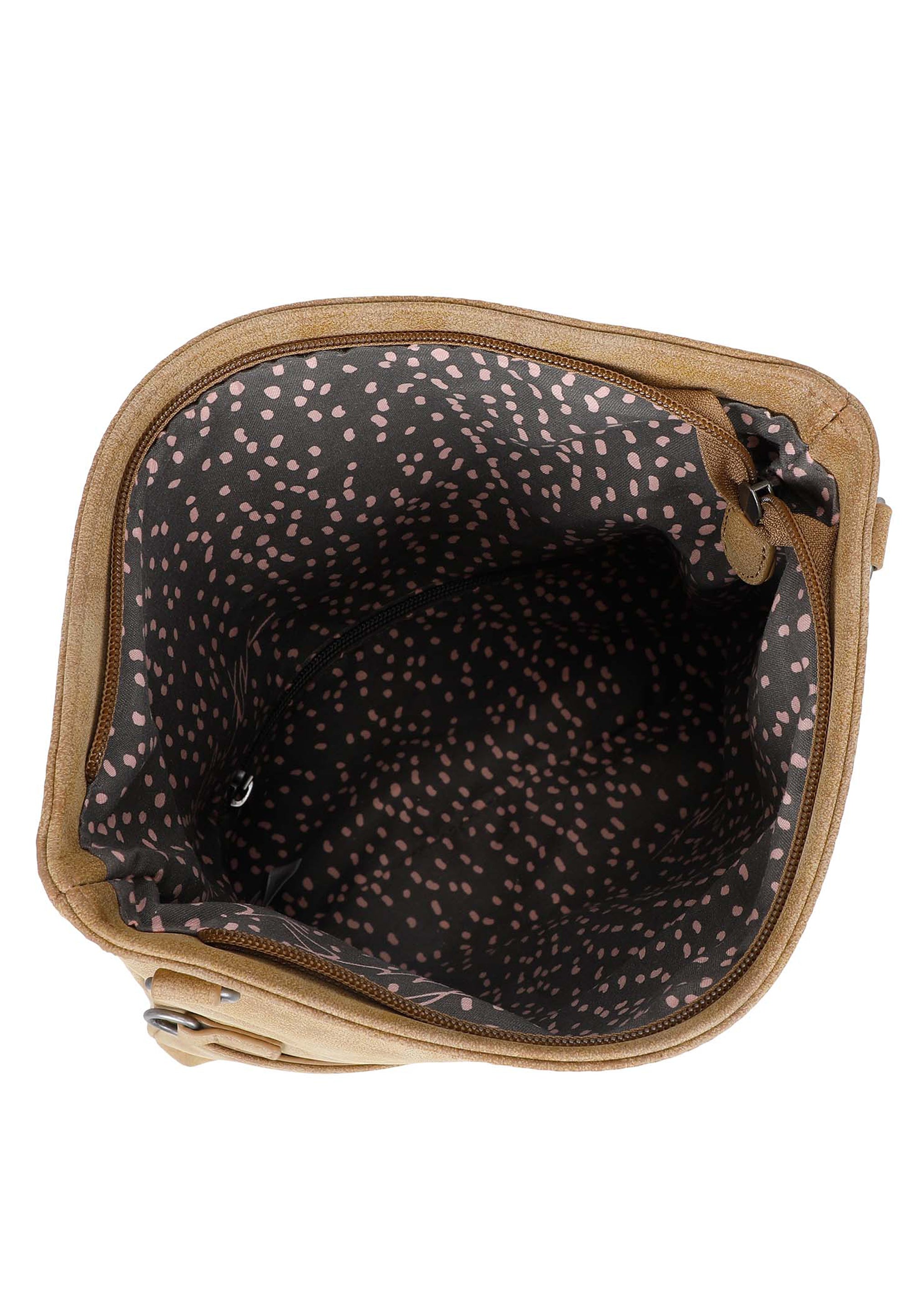 Im Inneren überrascht der Style mit einem wunderschönen Druck und einem kleinen Reißverschluss-Sicherheitsfach für die kleinen Begleiter des Alltags. Ein großzügiges Steckfach auf der Rückseite sorgt darüber hinaus für weiteren Stauraum.