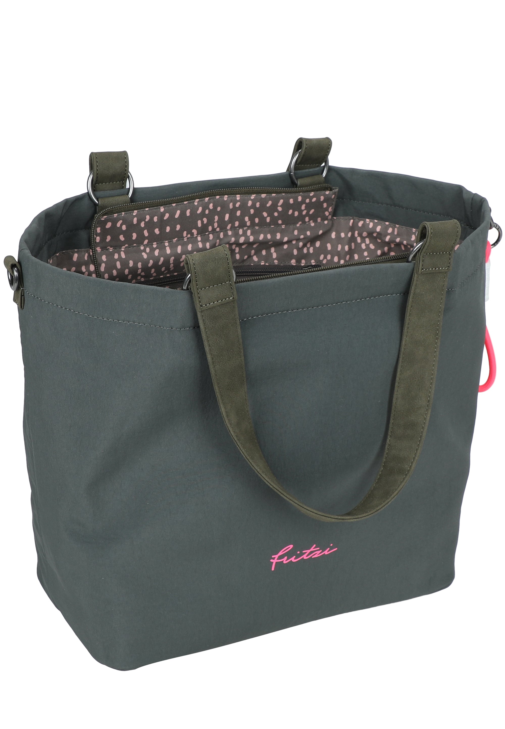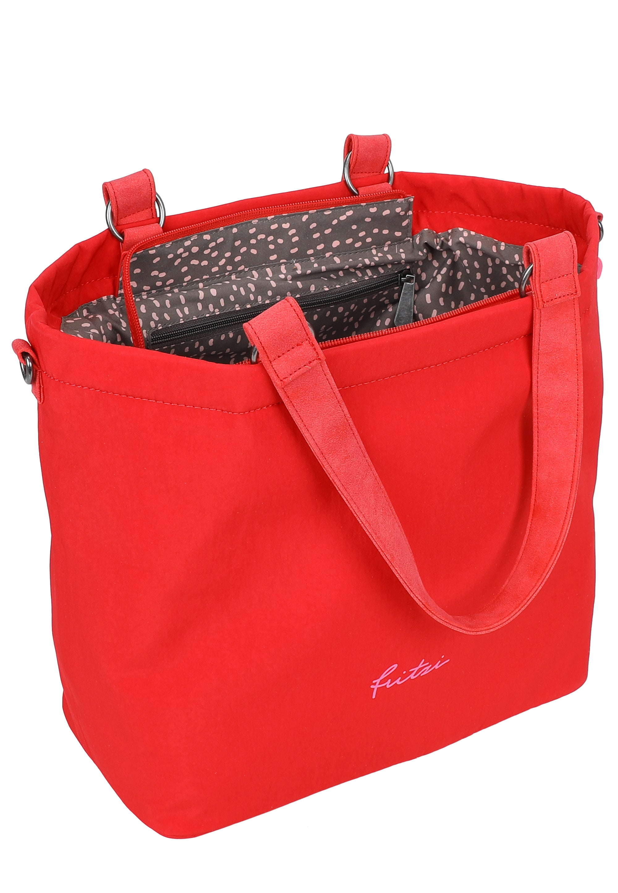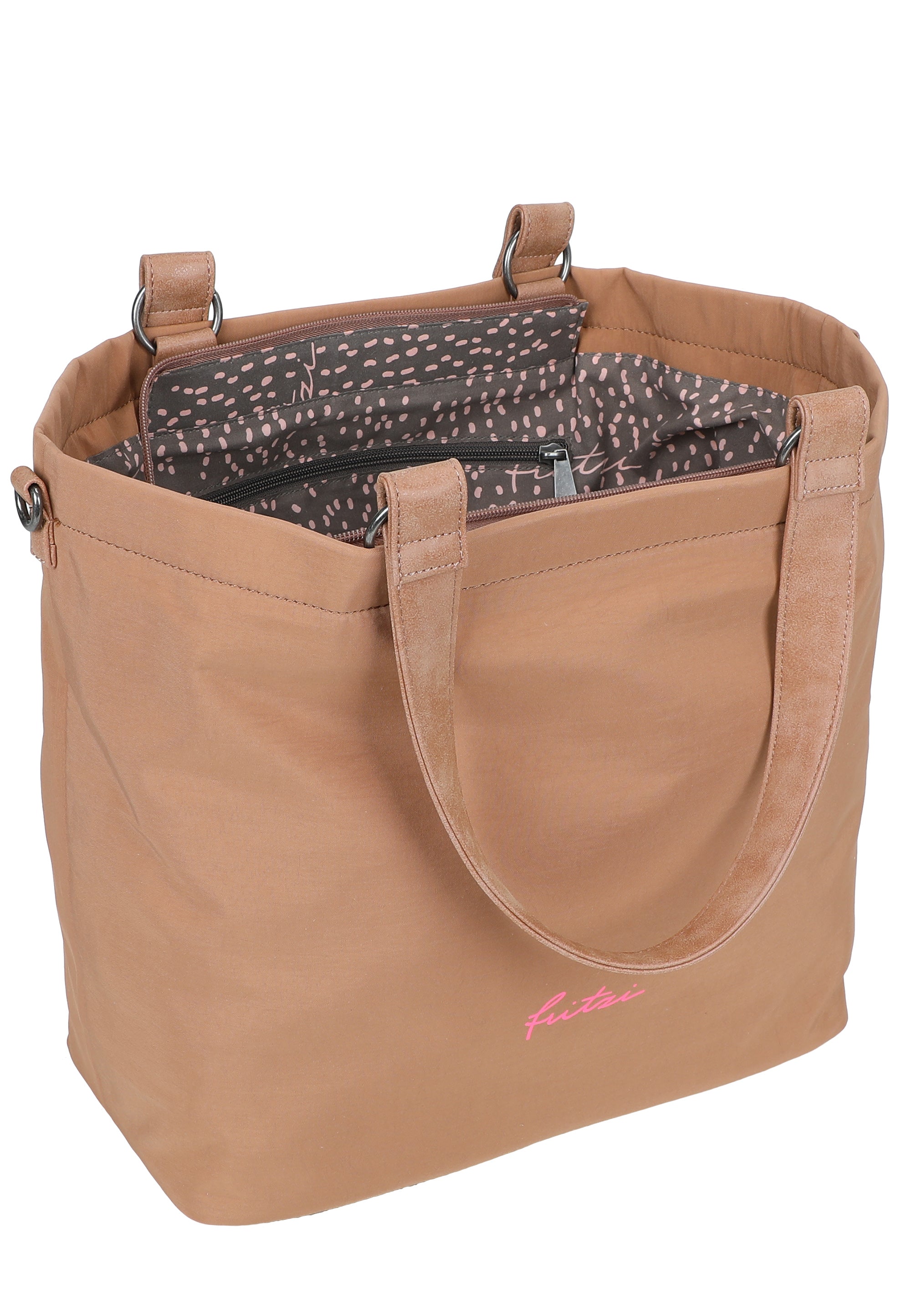 Der Shopper Lea lässt sich mit einem Reißverschluss einfach schließen. Im Inneren sorgen zusätzliche Fächer für eine gute Organisation. Der Style verfügt über einen abnehmbaren, dekorativen Anhänger.